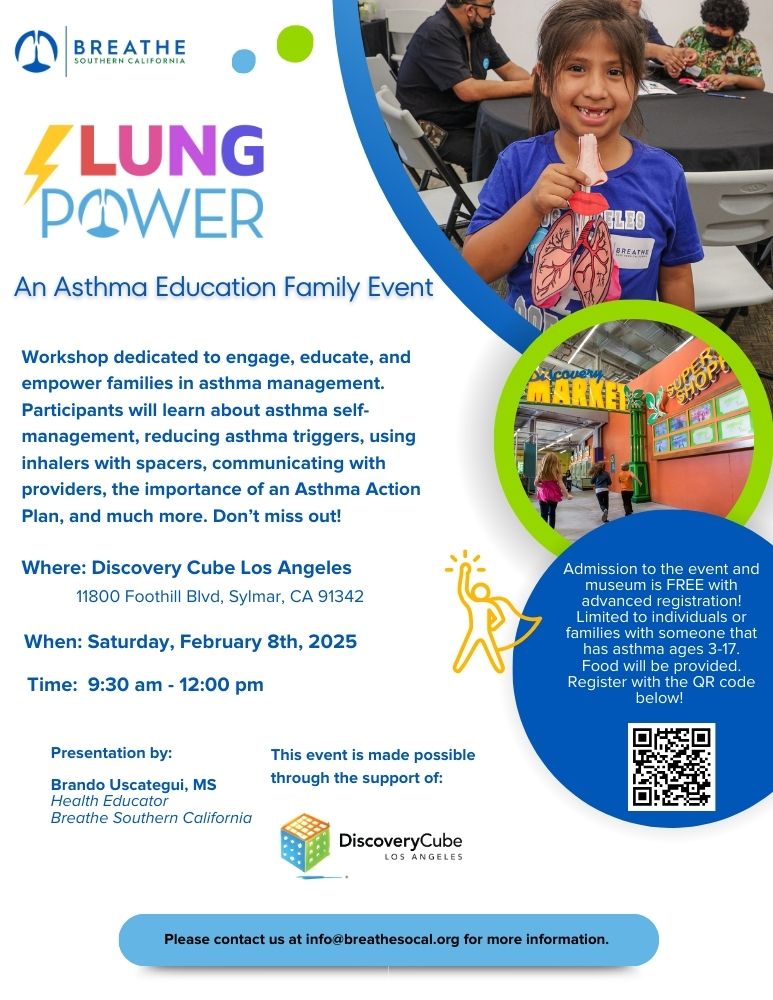 Workshop dedicated to engage, educate, and empower families in asthma management. Participants will learn about asthma self-management, reducing asthma triggers, using inhalers with spacers, communicating with providers, the importance of an Asthma Action Plan, and much more. Don’t miss out!