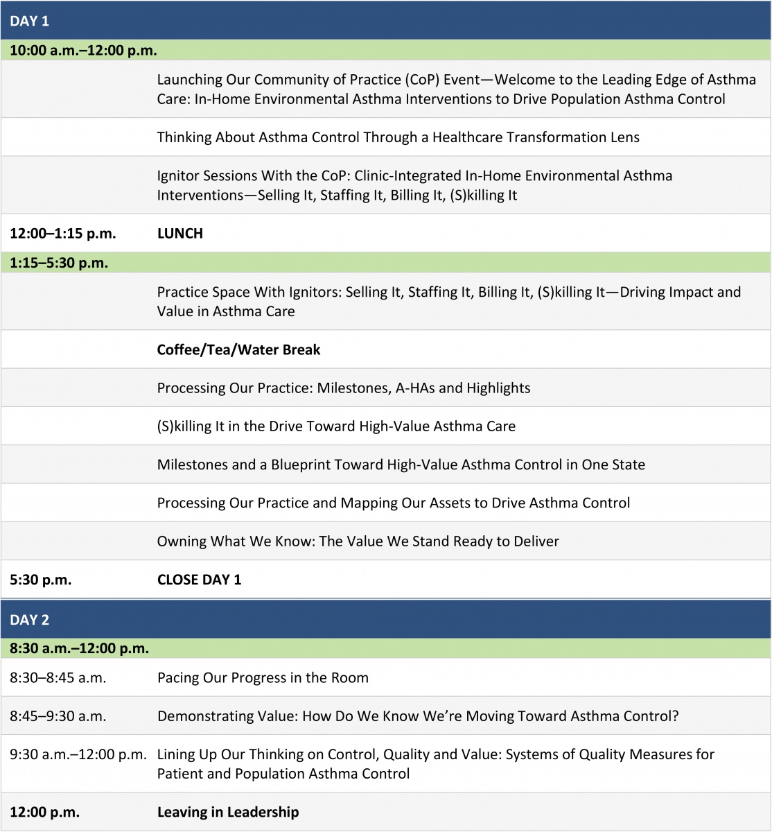 EPA’s Community of Practice intends to continue exploring health care reimbursement developments related to expanded financing for in-home asthma care services, quality measures for asthma control and research to support their development, and discussions of value in asthma care related to clinical and community integrations of care. More information will be shared as it is available.